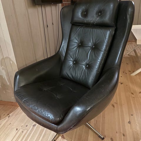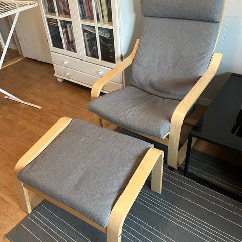 Velure stol med puff. Mørke blå (ser nesten svart ut).