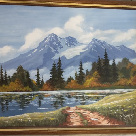 Fjellandskap ved innsjø – originalt oljemaleri signert A. Rogstad