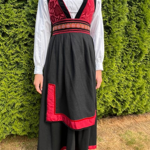 Festdrakt med skjorte og veske. Nesten som ny. Både drakt og skjorte er str 152. Selges samlet for 1200,-.