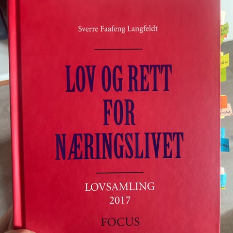 Lov og Rett for Næringslivet bok, 23. utgave. Sidene ser ikke synlig brukt ut.
