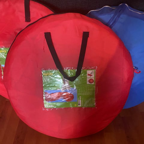 Royal Canin agility tunnel i praktisk oppbevaringspose med to håndtak. Tunnelen er sammenleggbar og enkel å legge sammen i posen etter bruk. Svært pent brukt. Må hentes.