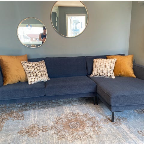 Pent brukt hjørnesofa med u-form, løse ryggputer selges. Er noen år gammel, men svært pen og lite brukt. Ingen merker eller flekker. Hoveddelen er 344 cm, de to sidedelene er 202cm. Høyde 70 Cm. Kan deles i tre seksjoner. Pris kan diskuteres.