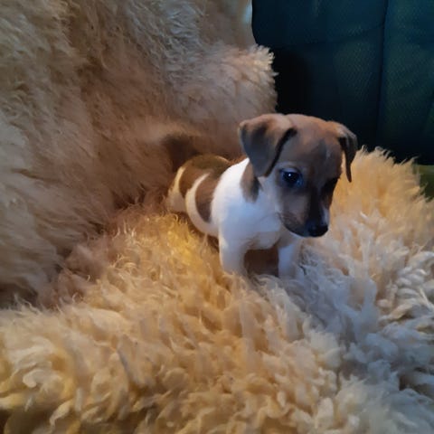 Ettersom hu vokser til så ser vi at den av og på knappen vi liker at terrierne har, den skrur seg liksom aldri helt på! Hun er litt "ferdinan" 😅 Trives best med å kose, suldre rundt i beina våre, smake på maten vår eller bare sove i armkroken til en av oss tobeinte i hus! En helt nydelig kosehund! Så hun vil passe ekstremt mye bedre inn hos noen som ønsker en turvenn/kosehund❤️ La oss bare si at innenfor hundesporter/utstilling vil a nok dessverre lure på når hun kan få komme hjem til sofaen❤️😅 Men finnes absolutt ingen triveligere liten valp enn Ixi!