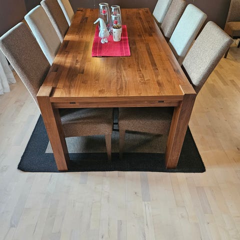 Selger en spisegruppe som har blitt benyttet på kjøkkenet.