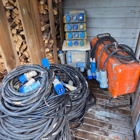 Har også 63A skap og 32A, 63A strømkabel gummikabel skjøtekabel både 230V og 400V.