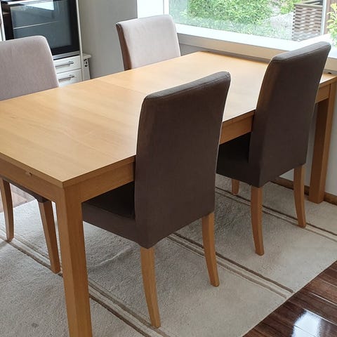 Pent brukt spisebord med 6 stk stoler. De ble kjøpt på 2021.