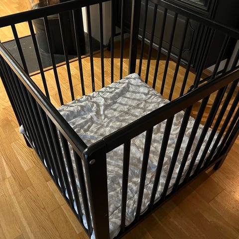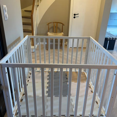 Bunnen kan stilles i forskjellige høyder, så når babyen er liten og ikke kan stå, så slipper man å bøye seg helt ned til bunnen av lekegrinda:)