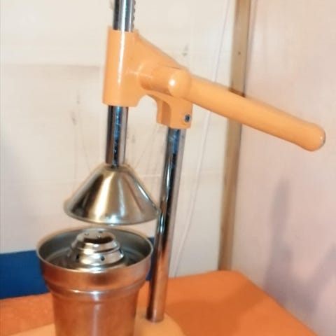 Selger en kraftig og stabil manuell presse for sitrus og granateple, i svært god stand.