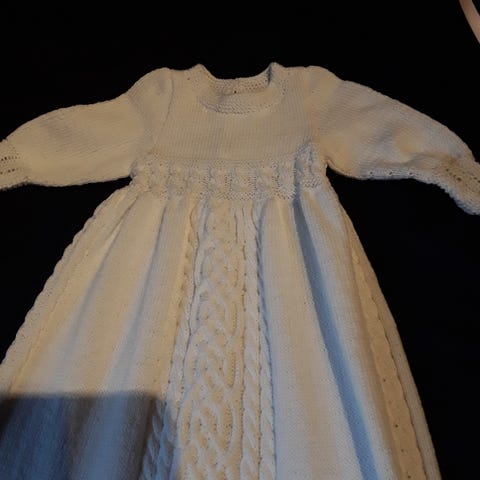 Hjemmestrikket dåpskjole, ubrukt, unik. Min mor har strikkedilla og har denne liggende - synes den skal få bli brukt av noen heller 💕🌟