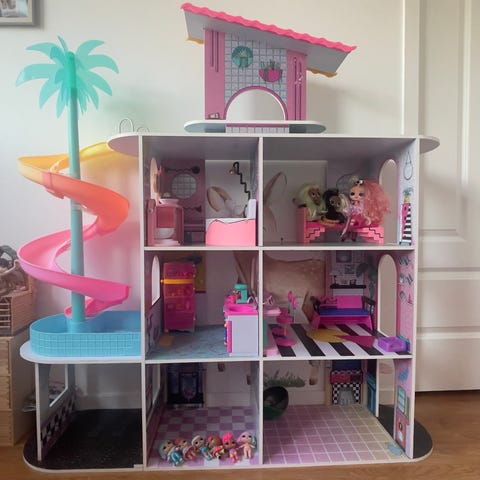 Pent brukt Barbie Dreamhouse med bil og masse tilbehør.