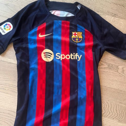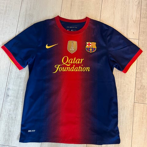 Dette er en drakt fra 2014 sesongen men veldig lite brukt, maks 7 ganger. Eneste som kan være synlig er hvis du bøyer bokstavene så kan man se sprekk, kun synlig ved bøying. Den kuleste drakta Barca har hatt på mange mange år etter min mening.