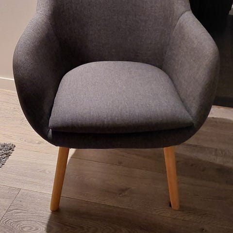 Selger en lekker Vildsund stol og krakk. Disse er i stoffet brun teddy.