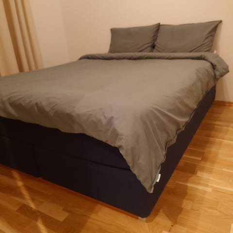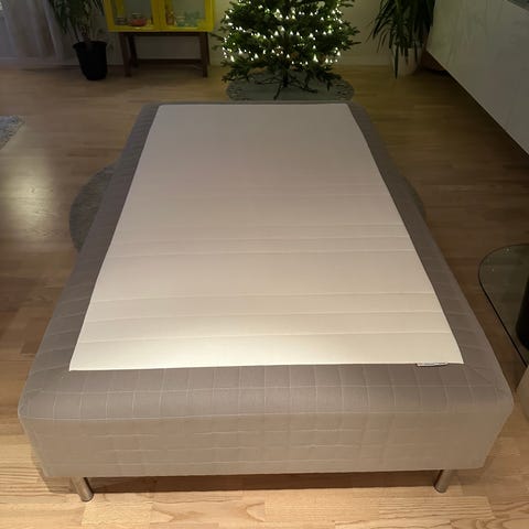 Brukt i 2,5 år. Overmadrass og madrassbeskytter følger med. Ønskes kjøpt og hentet mellom 6 til 10 januar. Originalpris for rammemadrassen er 3500 kr, pris kan diskuteres.