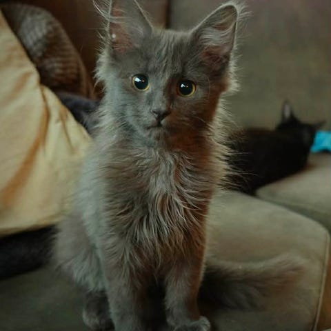 Den langhårete katten med mest grått er hunnkatt (bildet 3 og 7). De to andre er hannkatter.