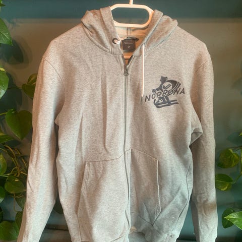 Norrøna fleecejakke for herre i størrelse M. Jakken er grå og laget av fleece materiale. Egnet for bruk som mellomlag eller ytterlag ved kjøligere værforhold.