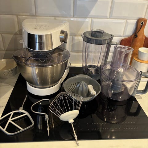 KitchenAid Artisan kjøkkenmaskin i kobberfarge med tilbehør som kjøttkvern og deigkrok. Maskinen har robust design og flere funksjoner for matlaging og baking. Maskinen har sluttet å virke, men om noen trenger utstyret til den eventuelt vil prøve å finne feilen på maskinen så gis den bort, eventuelt selges den hbo 0kr .