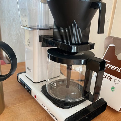 Meget pent brukt moccamaster. I daglig bruk og fungerer som den skal. Bruker ikke kaffekolben til å helle vann i trakteren og er dermed ganske ren. Selges siden vi har to :-)