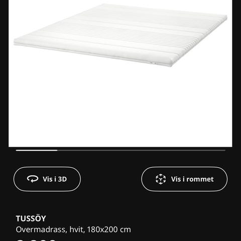 Xov comfort overmadrass 180x200 cm. Brukt fra august til nov 2025 i forbindelse med flytting før vi fikk ny seng. I fin stand. Må hentes på damsgård i Bergen