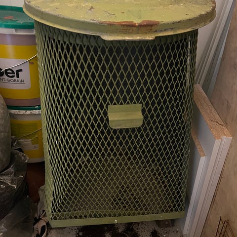 Pent brukt søppeldunk, kan brukes til å pynte opp uteområdet.