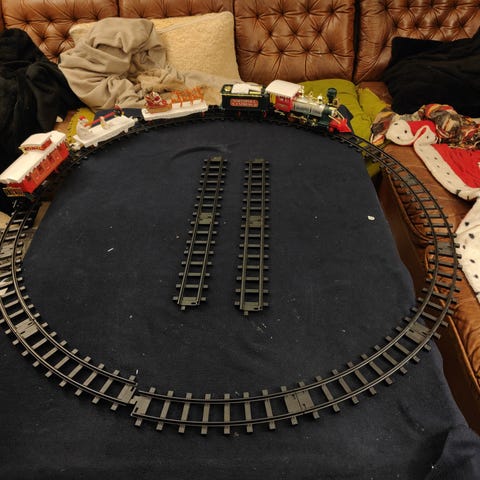 Inneholder tog, vogner, skinner, hus, figurer og leker. Alt i god stand og lite brukt.