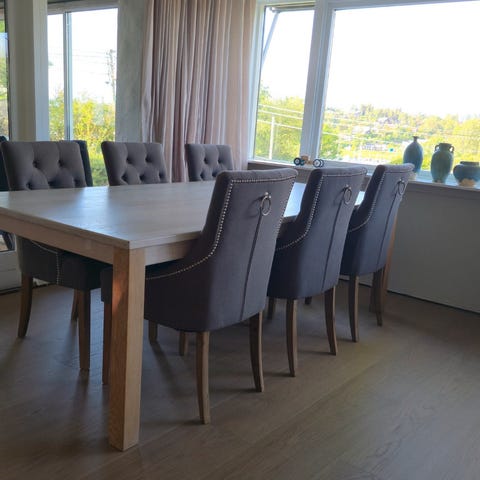 Jeg selger 6 stk mørk grå m/hvite stolbein spisestuestoler fra ikea.
