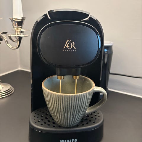 Kjøpt ny for 1799kr for l'or barista absolu kapselmaskin, svart, og ny pris for 550kr