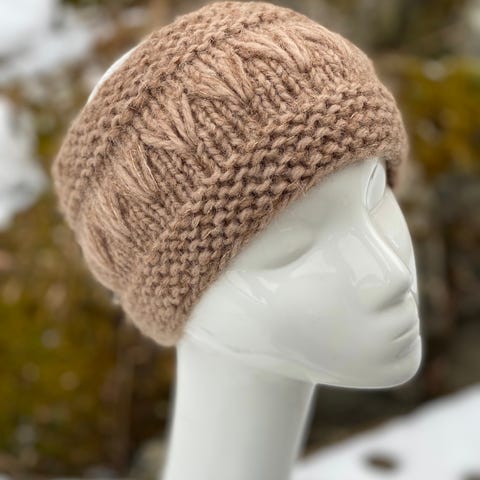Pannebånd ørevarmer i ull/alpakka, håndstrikket, nytt