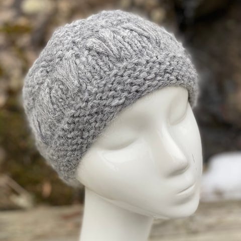 Mykt, behagelig pannebånd, håndstrikket i godt garn som inneholder alpakka, ull, merinoull og silke.