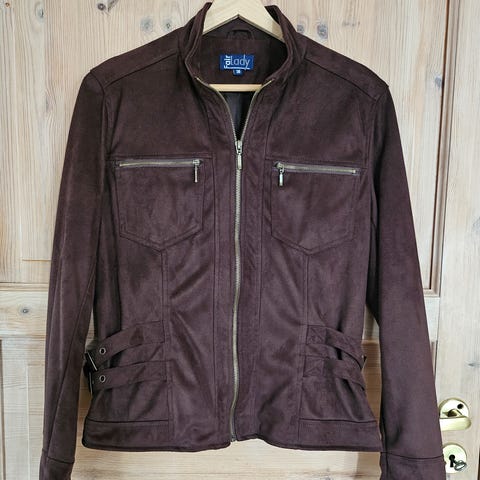 Stilren Baggage jakke i størrelse 40, laget i imitert skinn med myk fuskepels på innsiden. Klassisk brun farge, glidelåslukking og høy krage som gir god varme. Perfekt som overgangsjakke eller til kalde dager, med tidløs design som passer både til hverdags og fritid. Pent brukt og i god stand.