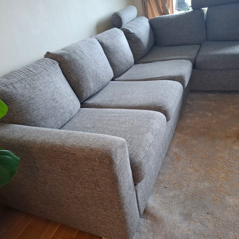 Hjørnesofa med vendbare nakkeputer selges billig!