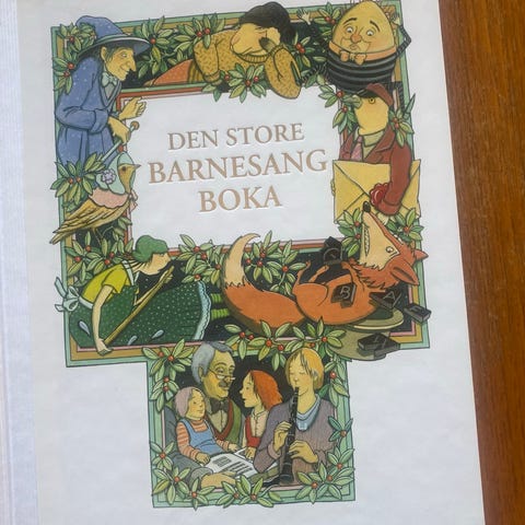 Den store sangboken er en sangbok med illustrasjoner og noter. Veldig fin, men vi fikk flere sangbøker i dåpsgave og fødselsgave, så selger videre de vi ikke trenger.