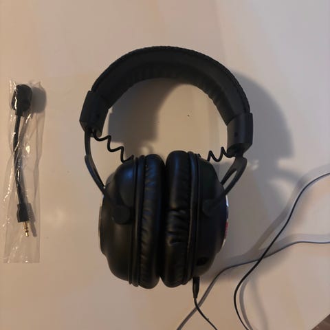 Pent brukt headset med kabel, har mistet mikrofonen, men ellers ingen problemer. Kan sende flere bilder hvis det er ønskelig.