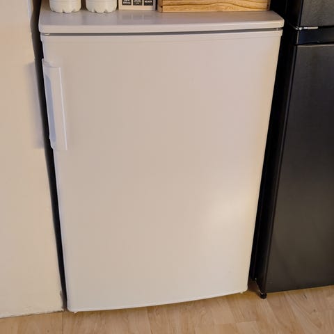 Electrolux kombiskap med kjøleskap og fryser i ett. Hvit farge med flere hyller og skuffer for organisering av matvarer. Sto i huset når vi flyttet inn så vi vet ikke hvor gammelt det er. Har en sprekk i den ene skuffa i kjøldelen men det påvirker ikke bruken (se bilde). Trenger å vaskes innvendig, selges som den er.
