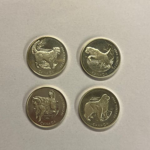 Komplett serie 6 st Canadiske sølvmynt 🩶> 50 gram fint sølv under spot