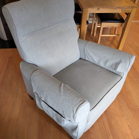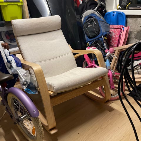 Ønsker å kjøpe lignende stol da denne (lånt i ferien) var så god å (m)amme i (pga armlenene?)