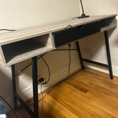 IKEA skrivepult, som: https://www.ikea.com/no/no/p/micke-skrivebord-brunsvart-10244743/#content