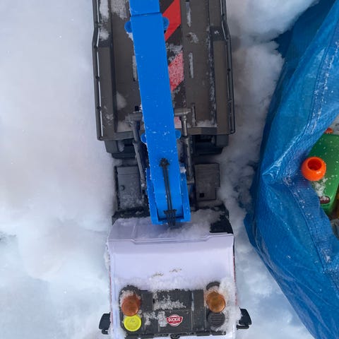 Gir bort lekebil til å sitte på. Vært brukt ute. Litt skitten, men ellers i god stand. Må hentes.