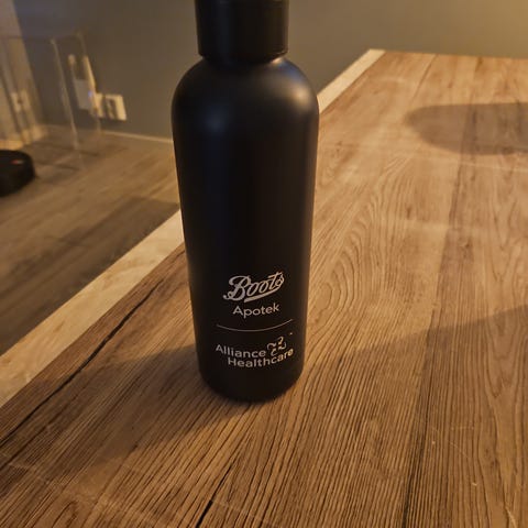 Kilde vannflaske med kapasitet på 750 ml, laget av klart glass. Flaska leveres med en blå neoprenhylse med Volkswagen og Sortland Auto logo. Passer til daglig bruk for oppbevaring av vann eller andre kalde drikker.