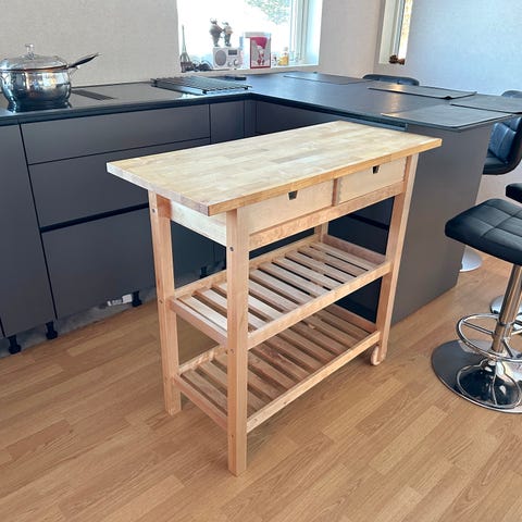 Sidebord i heltre, Bekvam-modell fra Ikea. Den nederste delen av bordet er malt hvit. Bordet er i veldig god stand bortsett fra noen få merker (se bilder).