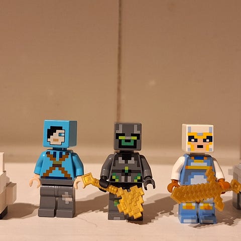 LEGO Minecraft figurine av karakteren Alex med oransje hår, grønn overdel og brune ben. Passer som tilbehør til LEGO Minecraft-sett.