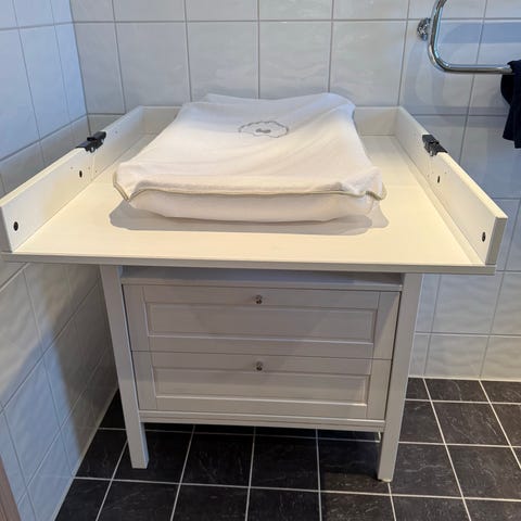 IKEA stellebord i hvitt med mål 82 x 54 x 96 cm selges da det ikkje blir brukt. Kun montert, da det ikkje passa inn på badet der det var tenkt.