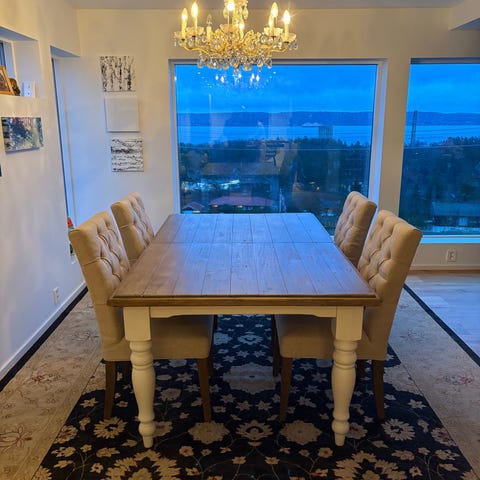 Det mangler en skure til ett feste, men det er ikke avgjørende for bordets funksjon. Ny skrue kan også kjøpes i butikk.