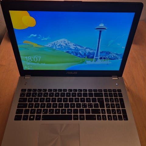 Asus Laptop E510MA-EB17 med en skjermstørrelse på 15,6 tommer. Bærbar datamaskin i svart farge. Leveres med tilbehør som ladekabel og mus.