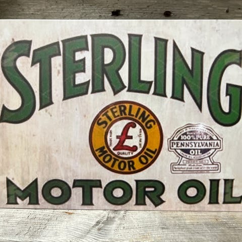 Tøft patinert AC spark plug emaljeskilt med motiv av en tennplugg. Sjeldent skilt. Skiltet har slitasje og grov rust. Motivet er ganske bra. Skiltet er nesten er rustet av på midten, og det er derfor limt på en stålplate på baksiden med teck 7 for å stive det opp. Mål ca 46 X 33 cm. Kan byttes i pinneraketter.