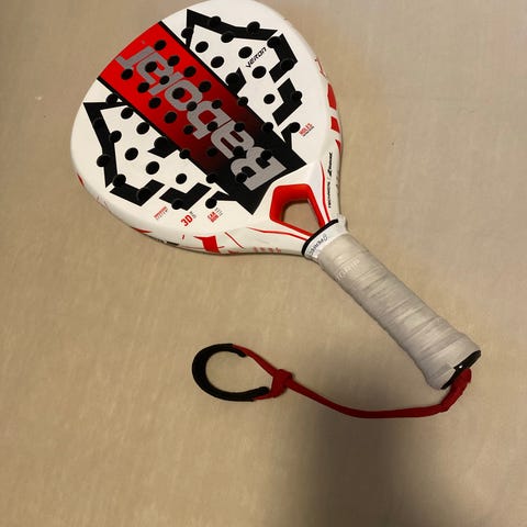 Racketen har en liten skramme på kanten av racketen ellers helt perfekt. Skrammen er ikke på selve racketen hvor man skal treffe ballen.