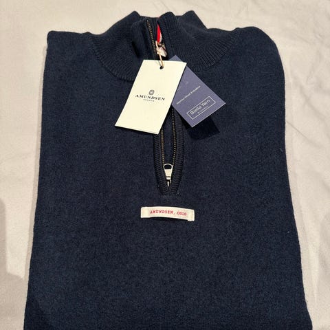 Godt, men pent brukt Amundsen genser i str S. Den ble kjøpt i jula 2023, men er nå for liten så derfor selges den. Nypris på den genseren er 2500.