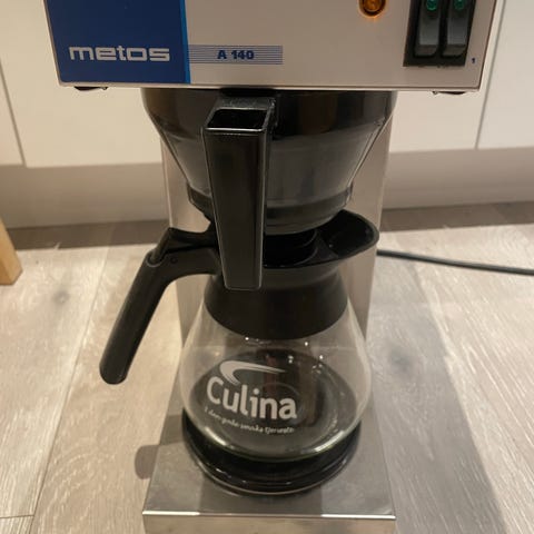 Ubrukt kaffetrakter med tevannsuttak. Direktekobling vann. Er pakket ut av esken og satt på lager. Aldri brukt. Kvittering/Faktura fra Metos 5/2-2024.