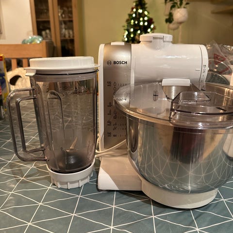 Bosch kjøkkenmaskin food processor med effekt på 1100 watt. Maskinen inkluderer flere tilbehørsdeler som visp, rivjern og kutteblader. Egnet for ulike matlagingsoppgaver som elting, rasping, visping og kutting.