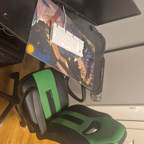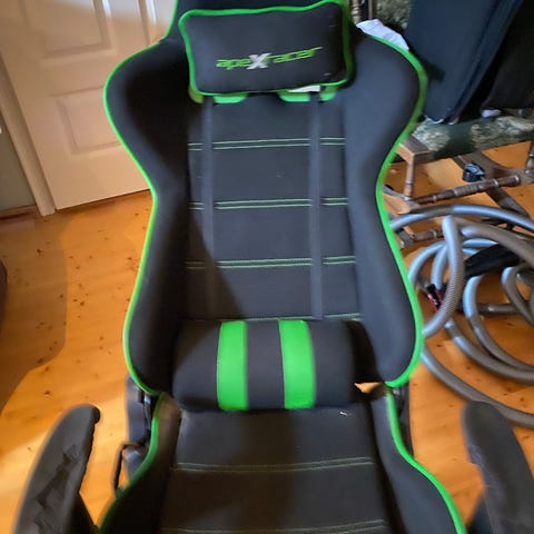 Godt brukt gamingstol selges. Synlig slitasje på armlener og bittelitt i setet. Liftfunksjon for regulering av høyde er intakt. Stolen har ikke funksjon for regulering av rygg.