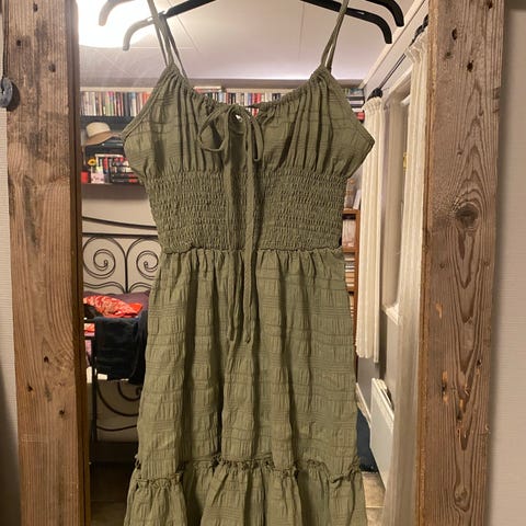 Nydelig grønnfarge, plisser kjole, fin til ferie, strand, selskaper.